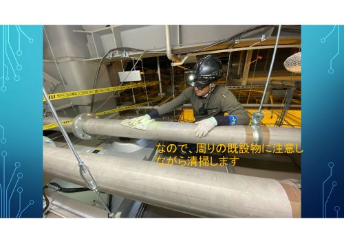 なので、周りの既設物に注意しながら清掃します。