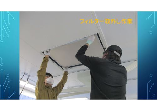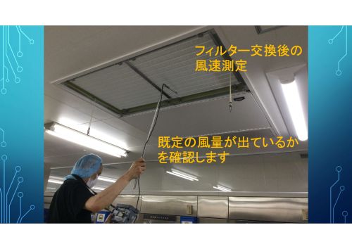 フィルター交換後の風速測定。 既定の風量が出ているかを確認します。