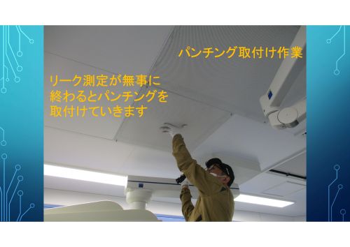 パンチング取付け作業。 リーク測定が無事に終わるとパンチングを取り付けていきます。
