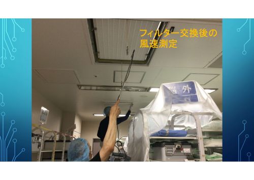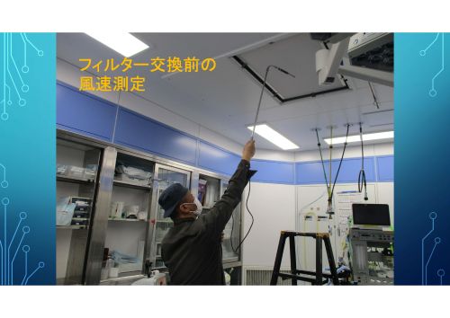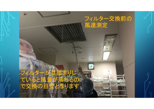 フィルター交換前の風速測定。